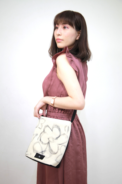 柔らかいタッチで花を描いた可愛らしいポシェット。