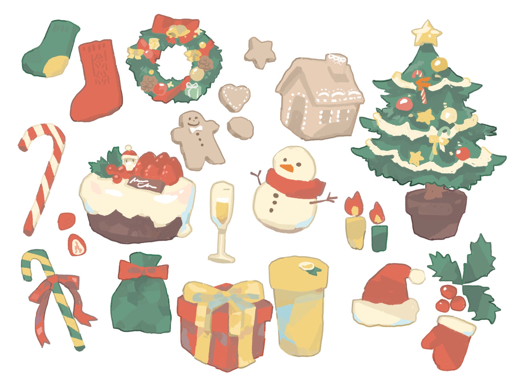 初心者でも簡単に描けるクリスマスリースやプレゼントボックスなどクリスマスモチーフを描いてみましょう。